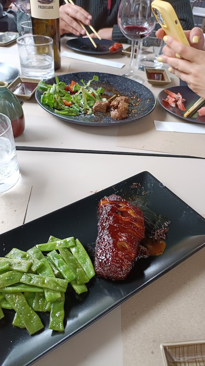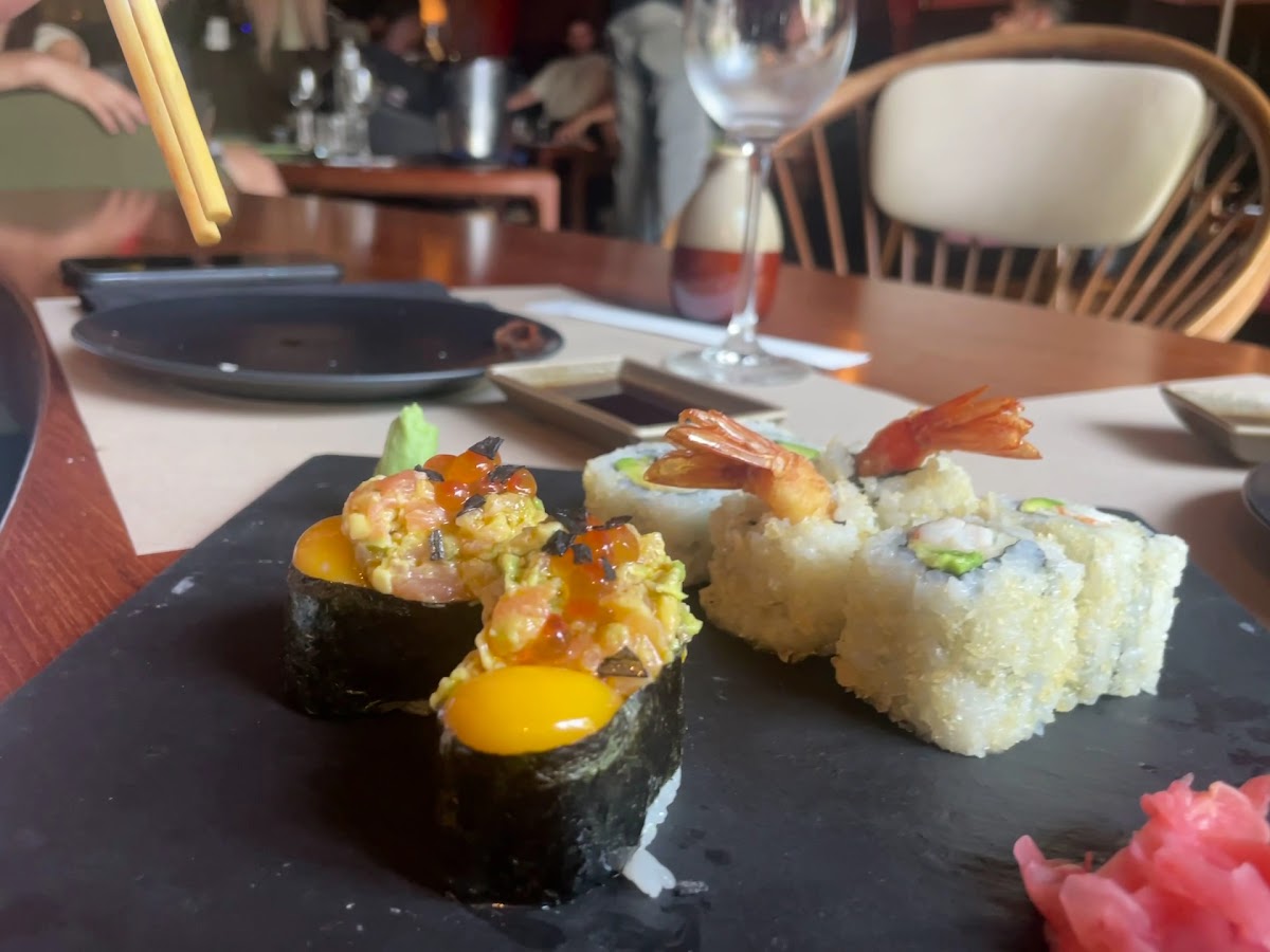 Good food, a few selection of wines… inside seating is low tables beware, it is not very comfortable. Our waiter was very reluctant to bring us the menu. We ordered wine from the menu which as soon as we ordered he took away the menu. And then he asked what we liked and dont like and he said he will organize all the plates. We did not understand it in the beginning and asked what is going on. At least can we see what you ordered for us and how much are they. He brought the list of what he ordered for us. He said i can cancel them and you can pick what ever you want from the menu. Eventually we changed 2/3 items from his list and added a couple of more. Also with the bill one of the items was charged twice instead of one. They apologized and corrected immediately. The sushi is very tasty. Be careful some of the shrimps are raw. We tried beef tataki and tempura both very good.
